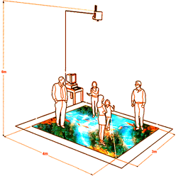 | Where is it possible to install and run interactive floor : Basically, it is possible to install and run active carpet system anywhere that is not exposed to direct sunlight. The less disturbing environment lights are, the more efficiency and fascination is to install and run. And also it would be more fascinating to install this system in places that have high altitudes. No physical changes will occur in term of decoration of intended place because ceiling package of this system is kept in place with bolt on the ceiling. | |